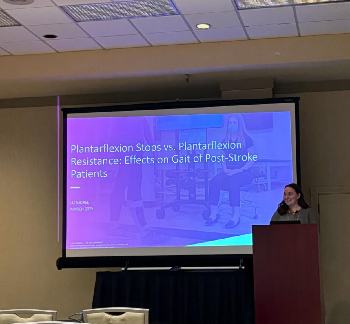 - Liz Morse presented “Plantarflexion stops vs plantarflexion resistance: effects on gait of post-stroke patients.”